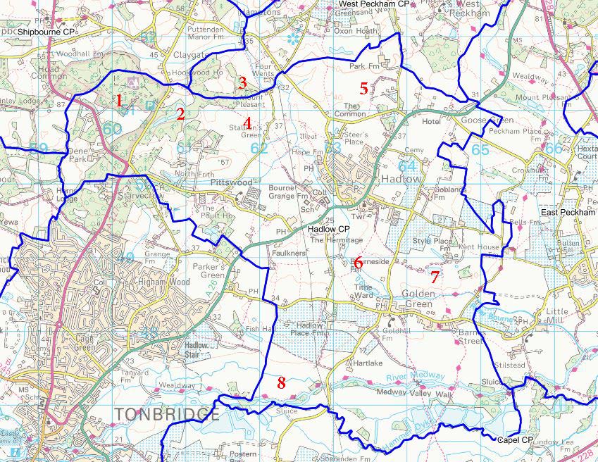 The Parish boundaries – and see below for codes to some good locations: