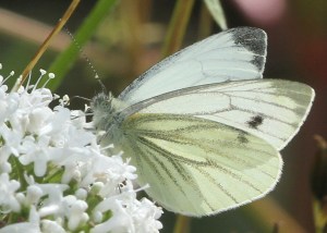 There are two generations of Green-Veined White adults to be seen in Hadlow in most years, the first between the start of April and the end of June, the second (much more numerous) generation in July and August.
