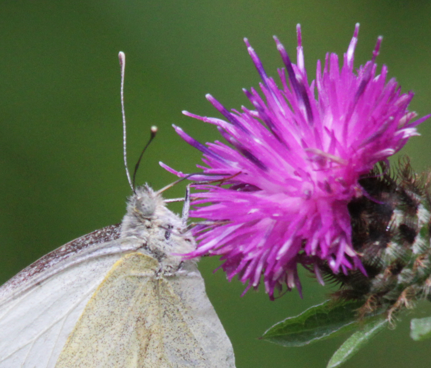 The first brood of adults appears around April, the second around July and there may be a partial third later in the year. The later generations of adults are darker in their markings than the spring generation. After the last summer generation of adults, their larvae each develop as far as pupating in a green-white chrysalis and enter a winter diapause or hibernation stage, until the next year’s adults emerge from the chrysalis in the following April. The butterfly is a strong flier and is able to migrate long distances. The adult population in the UK is regularly bolstered by immigration from the continent, so adults seen in Hadlow could have flown here from France or Spain. Here is one in the second generation nectaring off a Knapweed flower, I wonder where it came from?