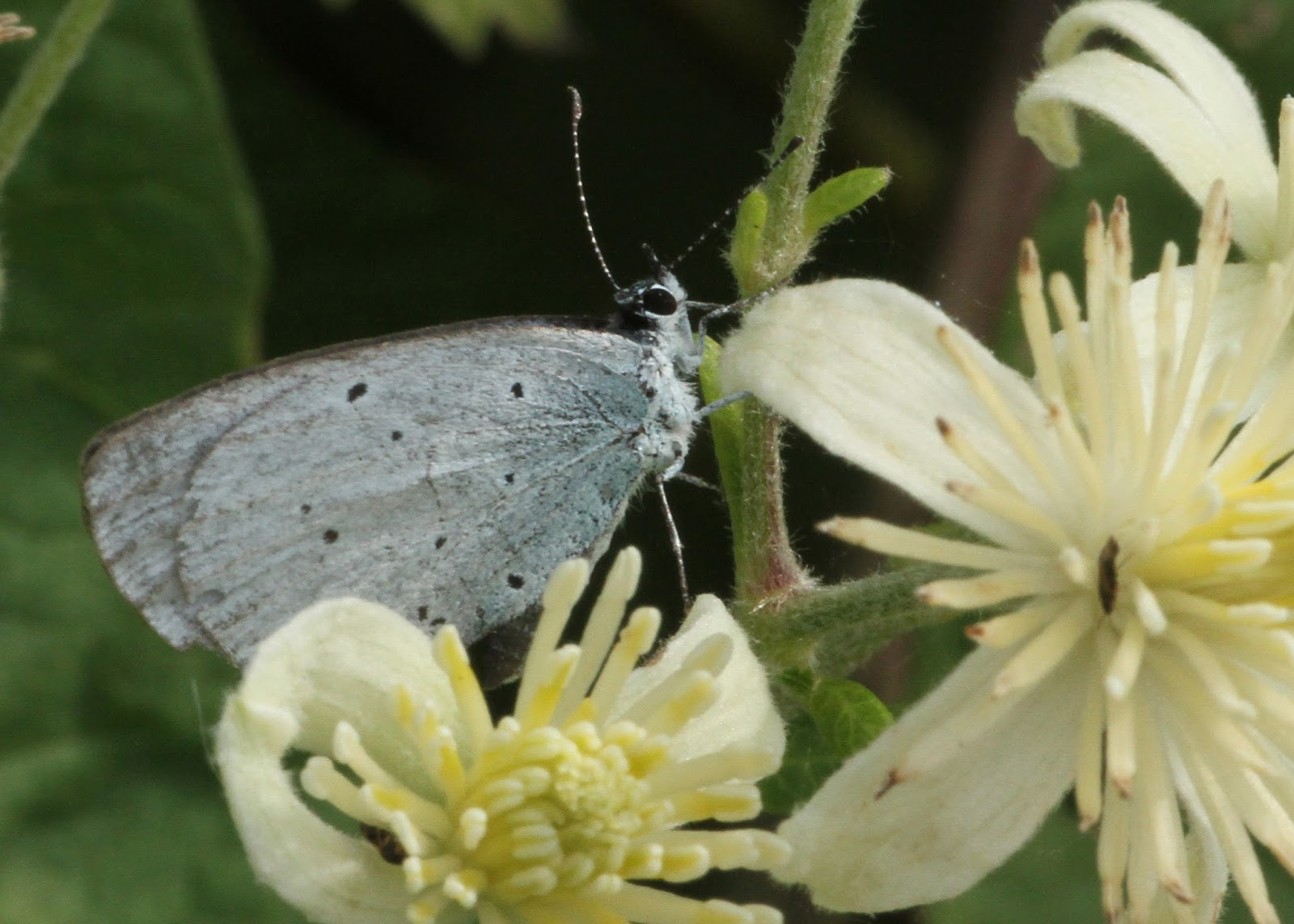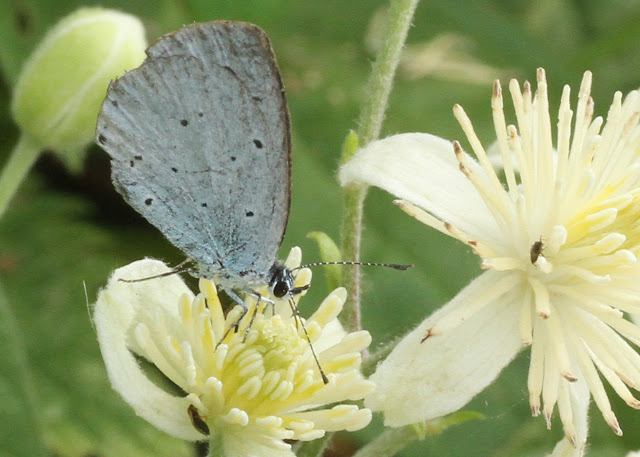In the photo above, the butterfly is nectaring from a Clematis vitis-alba flower, Old Man’s Beard. In my experience it is relatively unusual for these butterflies to feed from any flowers, although the UK Butterflies website mentions flower feeding from quite a wide range of various bushes and herbaceous plants.