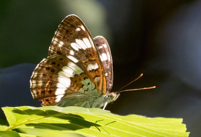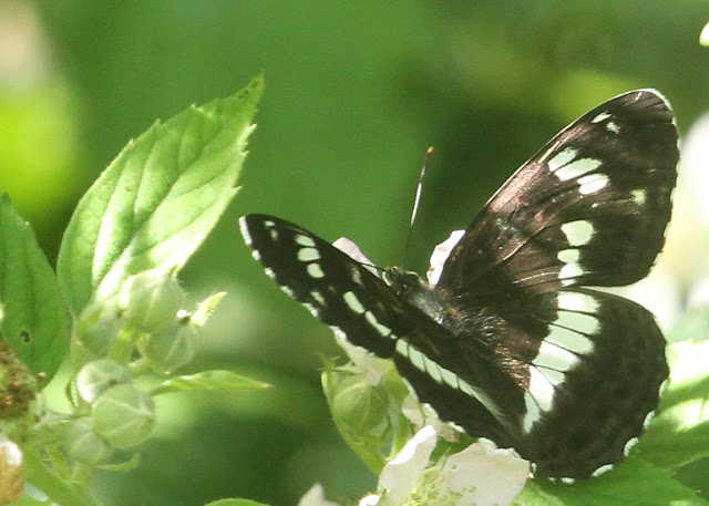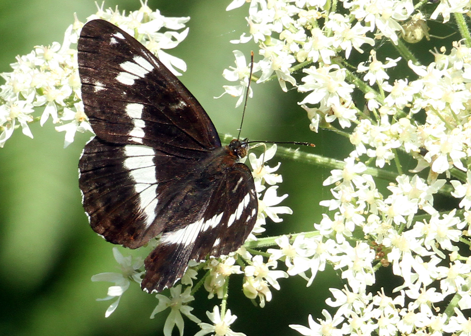 Although White Admirals are noted for nectaring on bramble, here is a photo of one (perhaps a male) nectaring in Dene Park on an umbellifer, possibly Angelica,